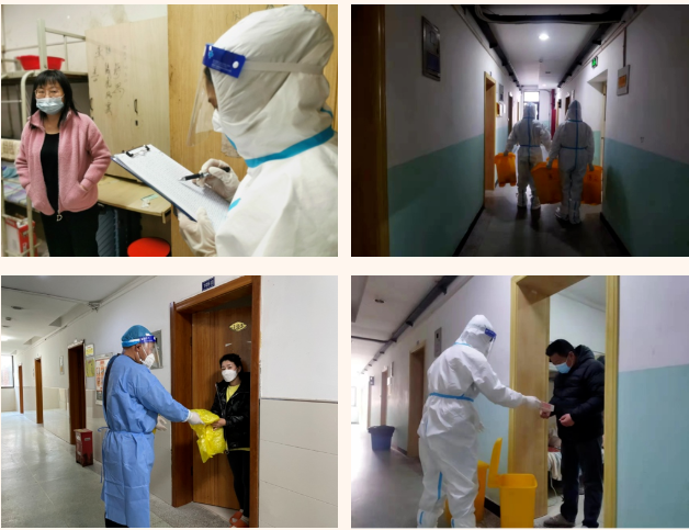 在這個集宿區(qū)內(nèi),有一群人奮戰(zhàn)在抗疫最前線。“大白”和“小藍(lán)”是他們最矚目的“通行證”、“工作證”,他們身份多樣,上演著超級“變、變、變”,他們既是細(xì)致入微的醫(yī)生助手,也是發(fā)放物資的大力水手,還是現(xiàn)場保障的行家里手。