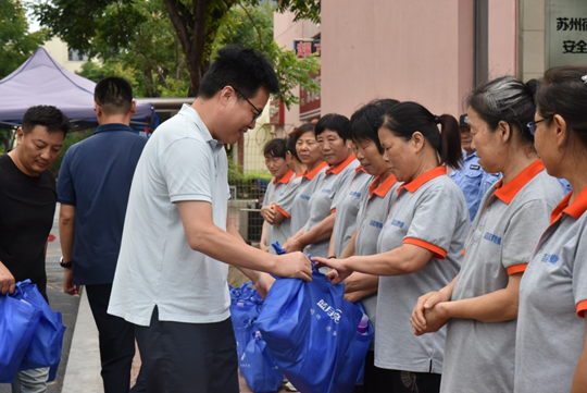 三伏天以來(lái),宿遷地區(qū)氣溫節(jié)節(jié)攀高,連日高溫天氣給一線勞動(dòng)者帶來(lái)了嚴(yán)峻考驗(yàn)。為切實(shí)做好防暑降溫工作,保障一線勞動(dòng)者的身體健康安全, 8月14日,建發(fā)公司組織開展“一線送清涼”高溫慰問(wèn)活動(dòng)。公司副總經(jīng)理倪松、相關(guān)部門負(fù)責(zé)人共同參加了慰問(wèn)。