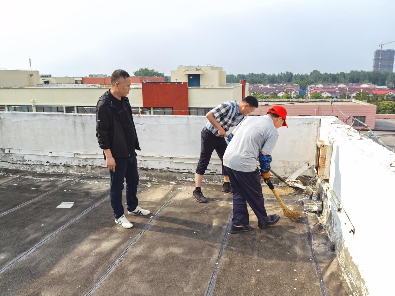 為應(yīng)對(duì)雨季到來(lái),保障排水系統(tǒng)暢通,公司組織保潔人員全員出動(dòng),對(duì)樓頂碎片、建筑垃圾、雜草等,進(jìn)行集中清理,以實(shí)際行動(dòng)筑牢雨季防汛安全防線。