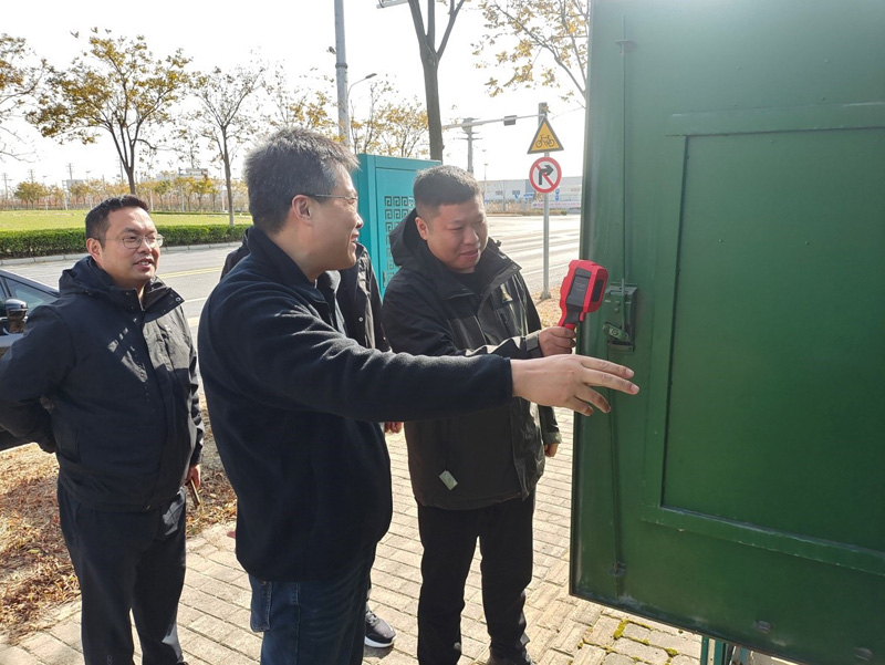 在檢查垃圾中轉(zhuǎn)站、路燈箱變、防汛閘站、河道駁岸時,檢查組認(rèn)真查看安全措施是否按要求嚴(yán)格執(zhí)行到位,運行巡檢記錄是否齊全,救生器材是否定期進行檢查、維護,閘站消防沙池、消防锨、消防桶等配備是否齊全到位;檢查組還詳細了解了垃圾壓縮設(shè)備電子圍欄報警裝置安裝使用情況,并現(xiàn)場使用紅外成像儀監(jiān)測路燈箱變運行情況。