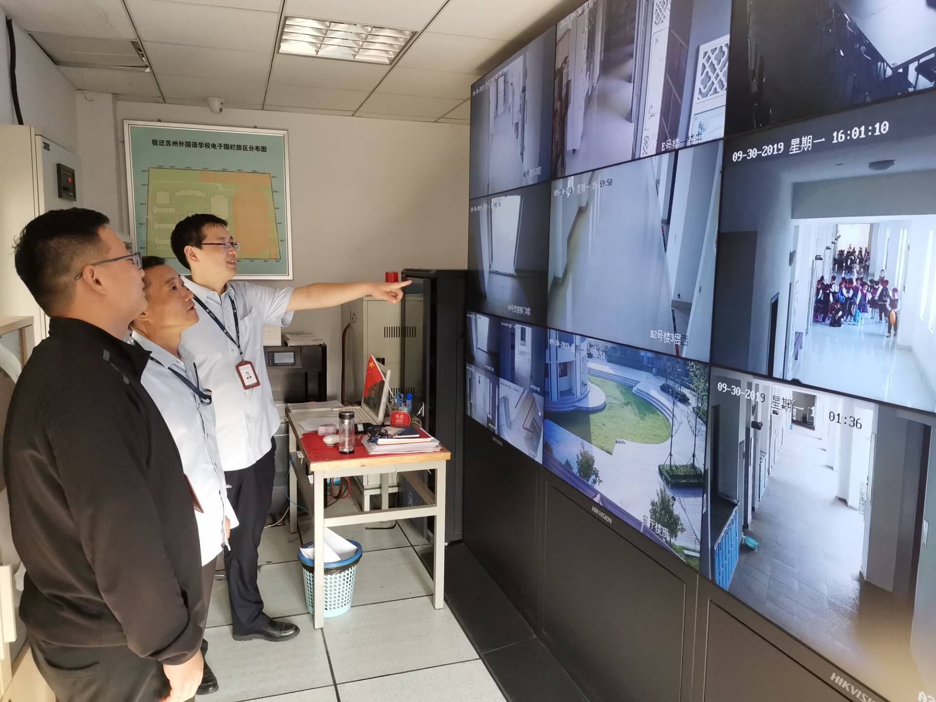 本次檢查對南校區(qū)實驗室、教學樓、圖書館、高低壓配電房、消防監(jiān)控室、水泵房、食堂等處進行檢查,詳細了解安全隱患整治、設(shè)備運行和維護情況,并隨機調(diào)取觀看監(jiān)控視頻,檢驗監(jiān)控視頻的覆蓋區(qū)域和監(jiān)控報警系統(tǒng)的使用情況,對人防、物防和技防“三防一體”提出人員專業(yè)培訓、視頻數(shù)據(jù)處理、運行環(huán)境優(yōu)化等方面的要求。