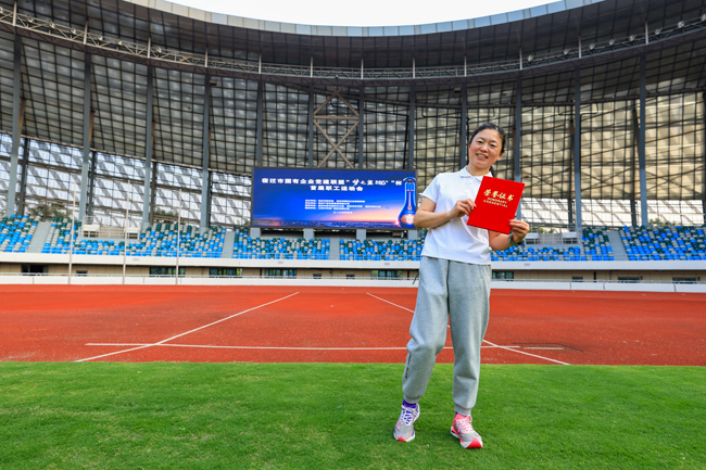 運(yùn)動(dòng)場(chǎng)上,建發(fā)公司桑曉芳以5分57秒33毫秒領(lǐng)先第二名12秒之多的絕對(duì)優(yōu)勢(shì)斬獲女子青年組1500米田徑賽金牌。